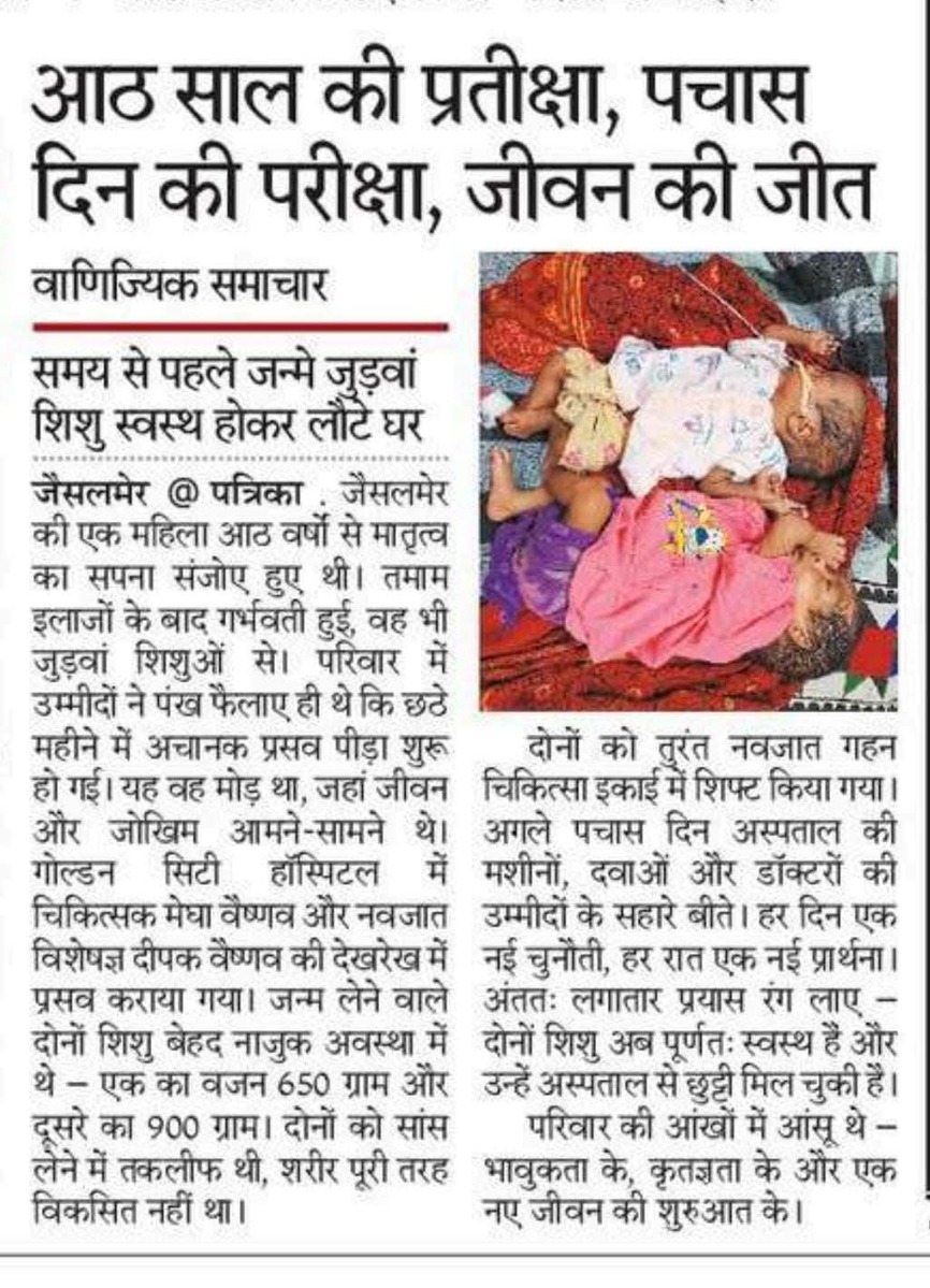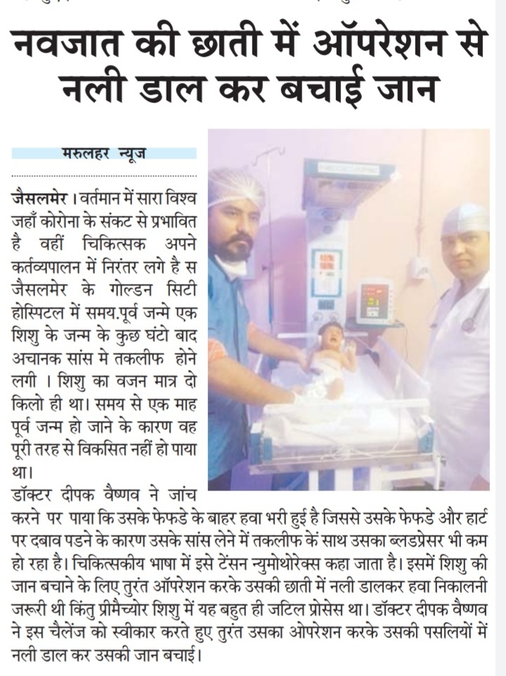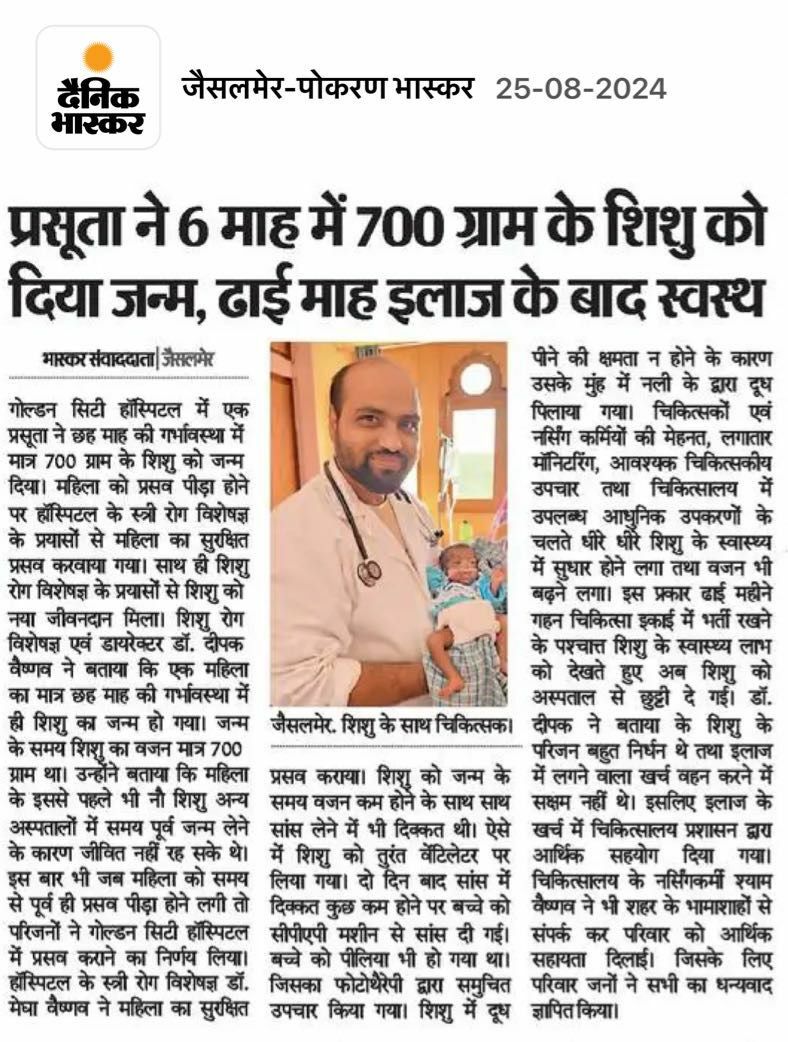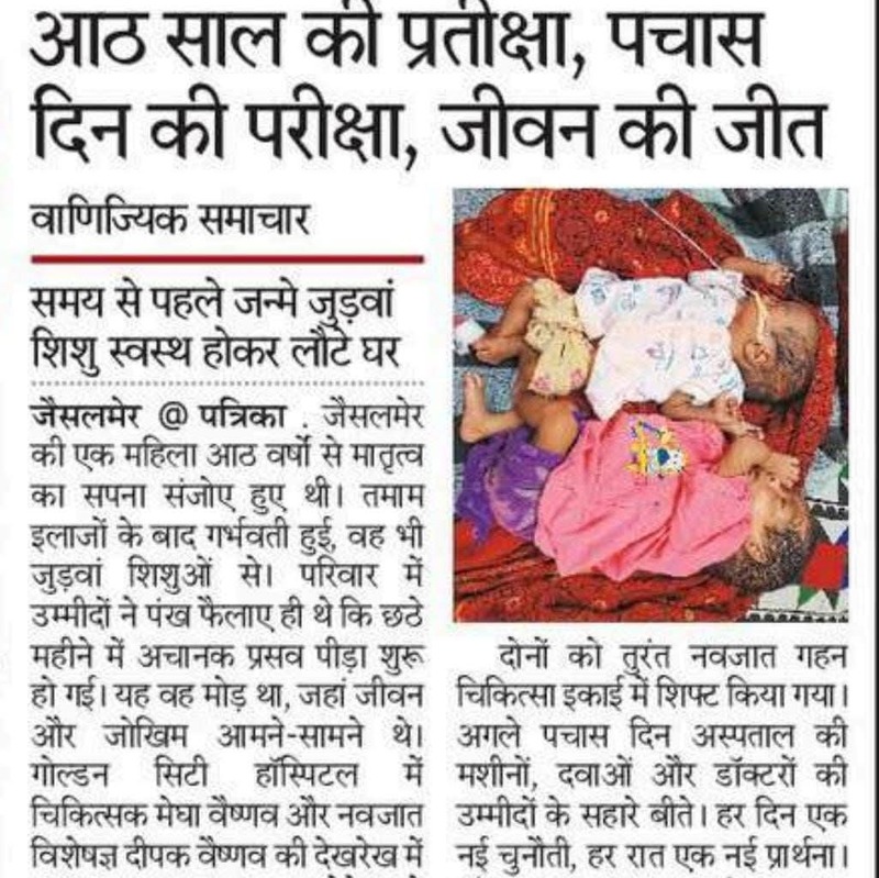 Golden City Hospital and Fertility Center, Jaisalmer's premier women and child hospital, has been delivering top-notch healthcare services since 2018 and has now expanded into a multispecialty hospital.