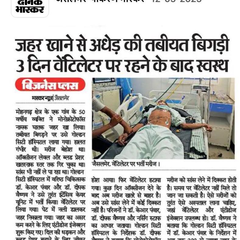 Discover outstanding medical care at Golden City Hospital, a distinguished multispecialty facility in Jaisalmer, offering a comprehensive range of specialized services.